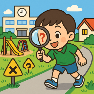 - 問い(課題):「私たちの通学路には、どんな危険が隠れているんだろう? 小さい子たちにも分かるように伝えたい!」