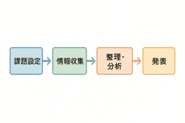 - 情報の収集:問いの答えを探すために、本やインターネットで調べたり、人に話を聞いたりします。