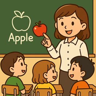 - スタート:「これはリンゴです」と、先生が答えを教えることから始まります。